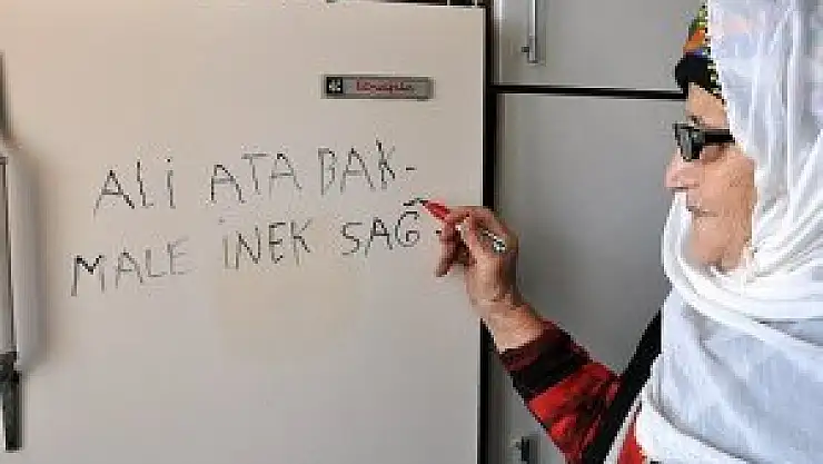 Tunceli'nin Ovacık ilçesine bağlı Güneykonak köyünde evlerinde okuma yazma öğrenen 65 yaş üstü 8 kadın, yazı tahtası yerine evlerindeki buzdolaplarını kullanıyor.