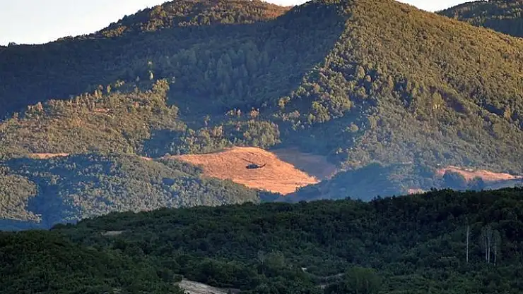Helikopterlerin de destek verdiği operasyonda, kırsal alana dağılan teröristlerle çatışma sürüyor.
