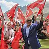 Ovit Dağı'nda yağmur altında bir araya gelen vatandaşlara Türk Bayrağı ile ay yıldızlı tişört dağıtıldı. Şölene katılanlara ÇAYKUR'a ait tırdan çay ikram edildi.