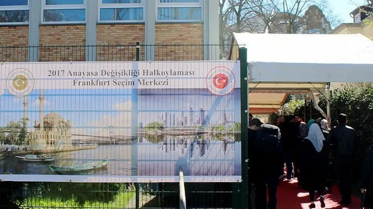 Türkiye'nin Frankfurt Başkonsolosluğundan yapılan yazılı açıklamada, bir sosyal medya hesabından yapılan paylaşımda, başkonsoloslukta anayasa değişikliği halk oylaması için oy verme işlemlerinin iptal edildiği iddiasının tamamen asılsız olduğu kaydedildi.