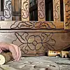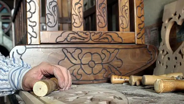Çeyiz sandıklarından sehpalara, dekoratif eşyalardan tepsilere kadar farklı alanlarda eserlerin ortaya çıkarıldığı bu sanatı dedesinden miras alan 45 yaşındaki Fatih Akkök de ahşaptan oyma beşik imal ediyor.