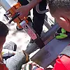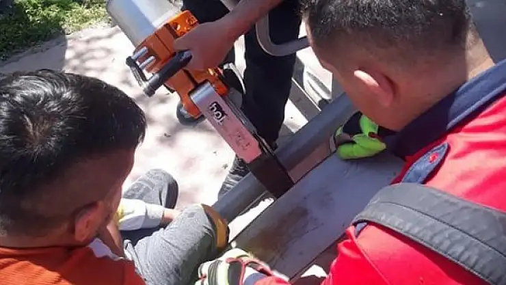 Denizli'nin Pamukkale ilçesinde oyun oynadığı esnada ayağını spor aletine sıkıştıran çocuk, itfaiyenin yardımıyla kurtarıldı.