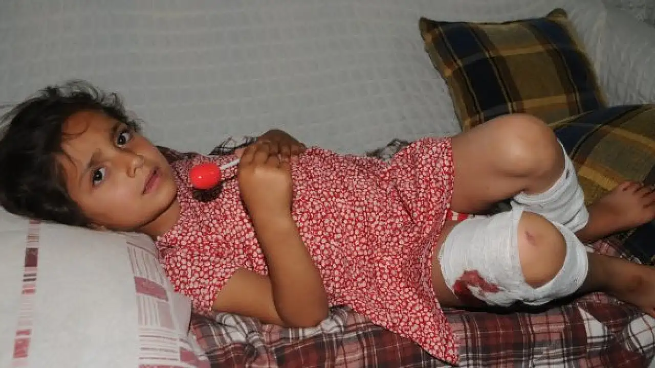 Sokak köpeğinin saldırısı sonucu yaralanan ve hastanedeki tedavisinin ardından evine getirilen 5 yaşındaki Elvin Bayar,