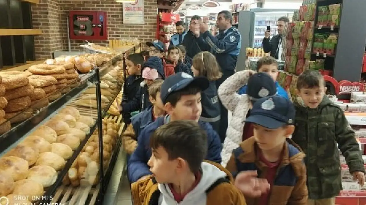 İlkokul öğrencileri, sınıf öğretmenleri ve zabıta ekipleri ile birlikte market ve fırın denetimlerine katıldı. Raflarda bulunan gıda ürünlerinin raf ömürlerini ve son kullanma tarihlerini denetledi. Akabinde bir pastaneye ve fırına giren ekip ekmeğin oluşumundan vitrine gelene kadar geçtiği evrelerde yer alan mekanın özellikle hijyen koşullarını denetledi. En ufak bir ayrıntıyı bile gözden kaçırmayan öğrenciler toplum sağlığının önemi açısından göstermiş oldukları bu hassasiyetten dolayı tebrik edildi. Okul yönetimi öğrencilere böyle farklı bir uygulamayı resmi ekip araçları ile sağlayan zabıta ekiplerine de teşekkür etti.