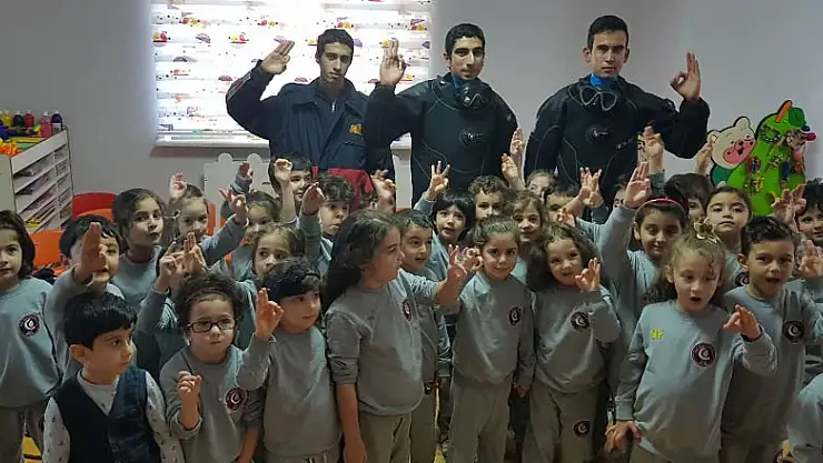 Hafta boyunca öğrencilere deniz canlılarıyla ilgli bilgiler verildi. Bu bilgiler bir birinden farklı etkinlik ve faaliyetlerle desteklendi. Öğrenciler deniz canlıları proje çalışmaları, balık tutma oyunu, su altı dünyamız gibi bir birinden farklı çalışmalar yaptılar. Haftanın son günlerine doğru minikleri büyük bir sürpriz karşıladı. Balık adam eğitmeni Yılmaz Nikbay’ı karşılarında gören miniklerin heyecanları gözlerinden okunuyordu. Nikbay’ı meraklı gözlerle izleyen minikler su altı dünyasıyla ilgili bilgi alarak merak ettikleri konularla hakkında soru sorma fırsatı da yakaladı. Etkinlik okul müdürü Aliye Duman’ın Nikbay’a teşekkürleri ile son buldu.
