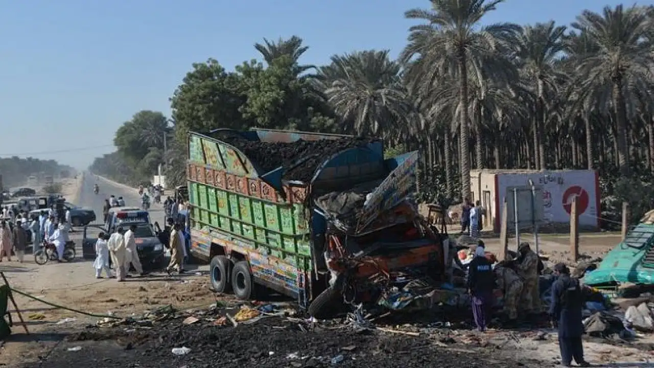 The accident took place in Khairpur district when the heavily loaded truck lost control while overtaking and crushed the van, local broadcaster Geo News reported.