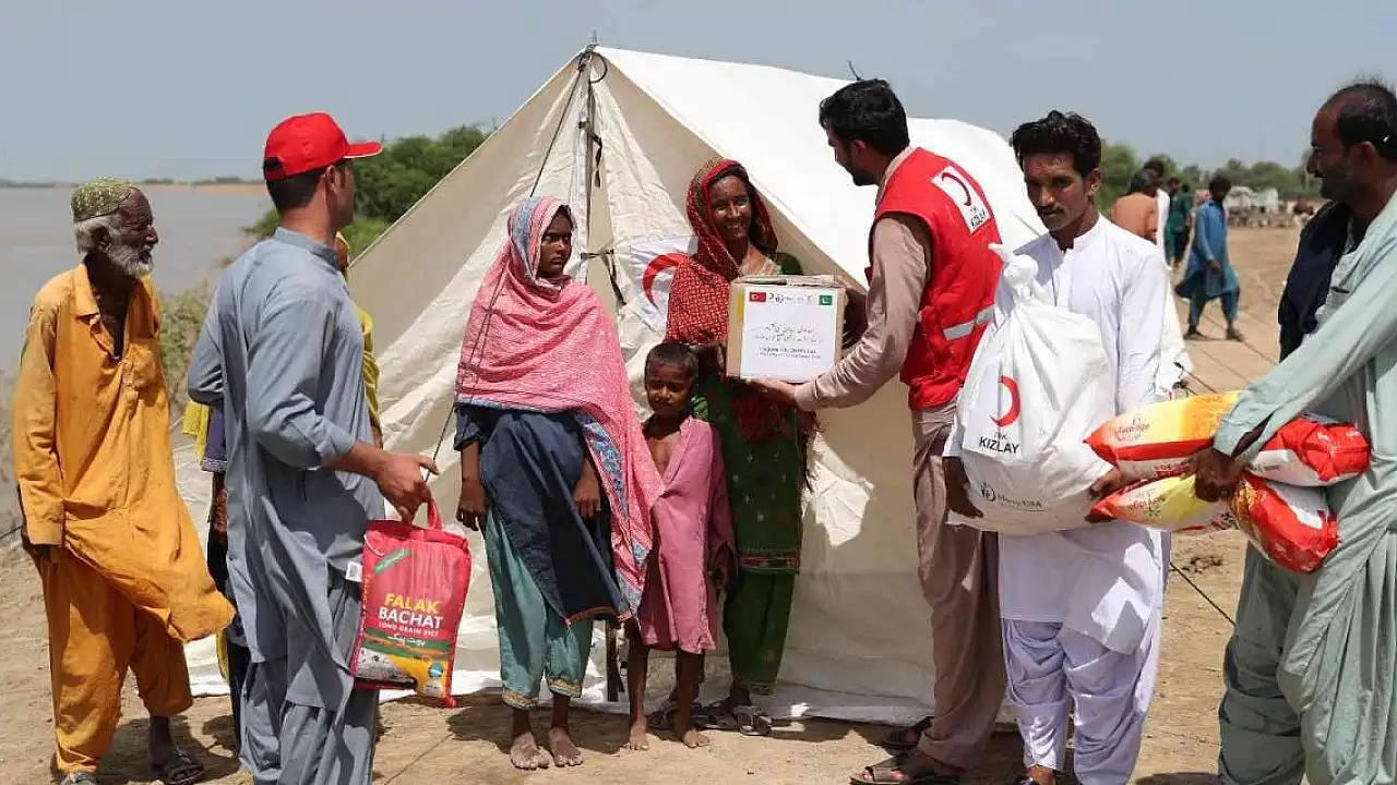 Türk Kızılay, Haziran ayından itibaren son 30 yıllık verilere göre yaklaşık 3 kat daha fazla yağan Muson yağmurları nedeniyle yaşanan sel felaketinin ardından Pakistan'da yaraları sarmaya devam ediyor. Kızılay, afet çadırlarının kurulumunu tamamlayarak selzedeleri yerleştirmeye başladı.