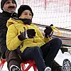 Hafta sonu tatilini fırsat bilen aileler, çocuklarıyla kızaklara binip kayak yapmanın keyfini çıkardı.