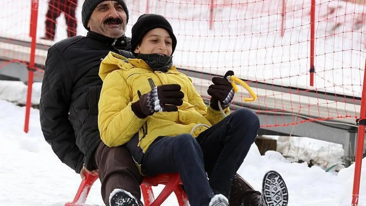 Yaşlı insanların da kızakla kayıp gönüllerince eğlendiği Palandöken'de küçük çocuklar da aileleriyle kar keyfi yaşadı.