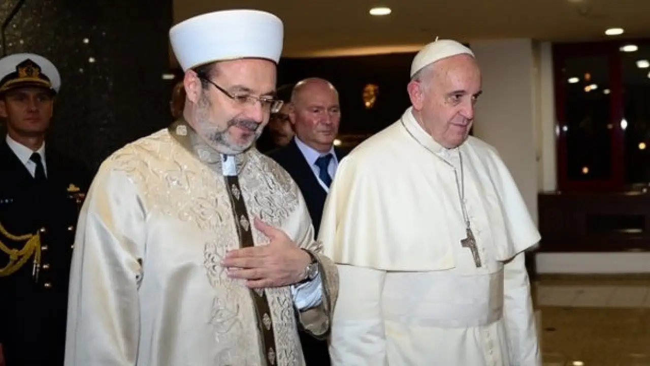 Papa 16. Benediktus'un Diyanet İşleri Başkanlığını ziyaretinde başkan yardımcılığı görevini yürüttüğünü anımsatan Görmez, göreve gelmesinin ardından Papa Franciscus'un verdiği mesajları yakından takip ettiklerini söyledi.