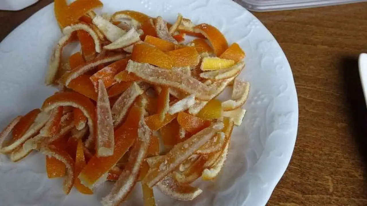 Limon ve portakal şekerlemesi yapımının 4 gün sürdüğünü aktaran Hürü Tuna, "Limon ve portakalları kabuklarından ayırıyoruz. Ardından 2 gün kovalarda suda bekletiyoruz. Portakalı 3 gün bekletiyoruz. Ardından kazanlarda önce tuzlu suda 15 dakika haşlıyor ardından şekerli suda kaynatıyor ve şekerlemesini yaptıktan sonra tepsilerde kurumaya bırakıyoruz" dedi.