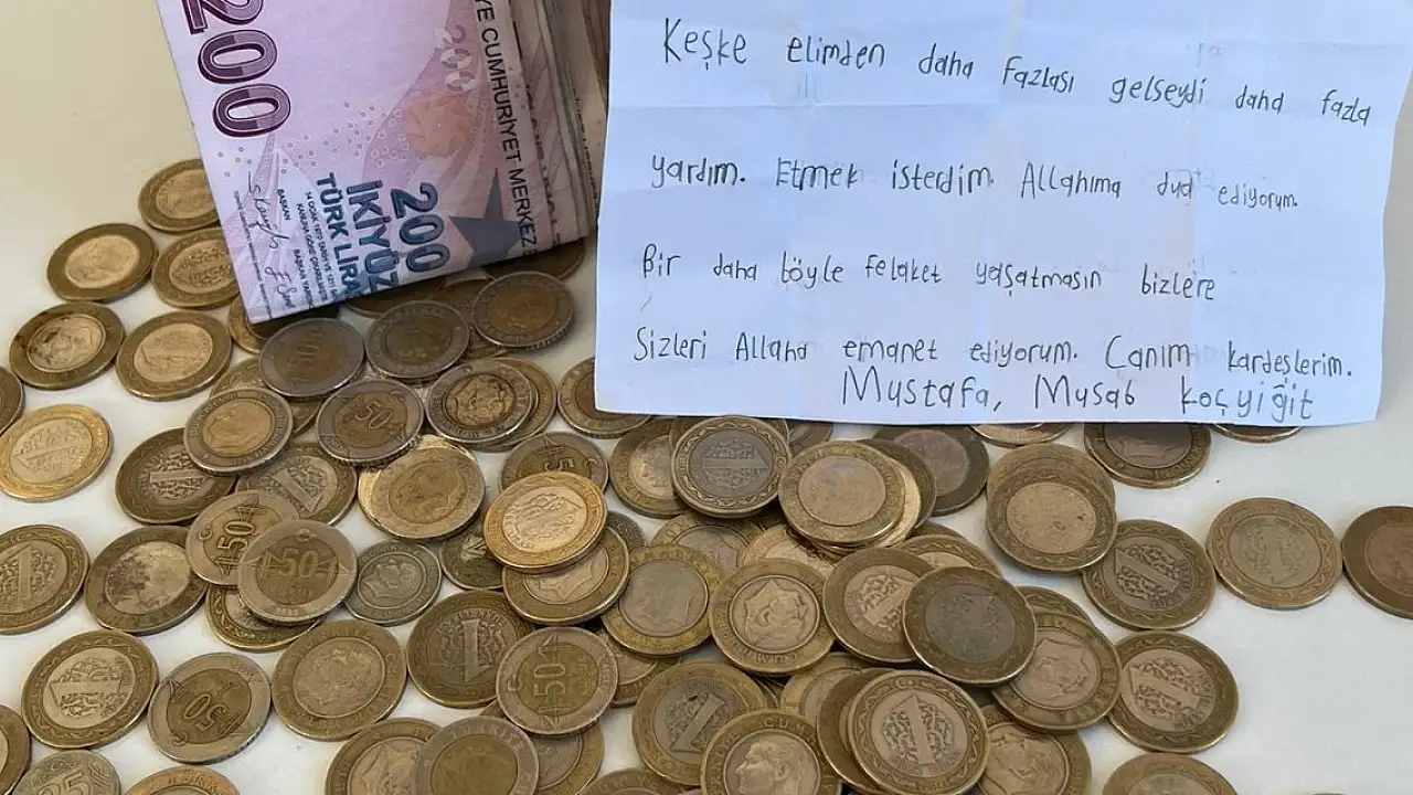 Kahramanmaraş merkezli 10 kentte yıkıma neden olan 2 büyük depremin ardından Bitlis'te yaşayan Mustafa (10) ve Musab Koçyiğit (12) kardeşler, bisiklet almak için kumbaralarında biriktirdikleri parayı, depremzedelere bağışladı. AFAD İl Müdürlüğü'ne giden kardeşler, "Kumbaramızda biriktirip bisiklet alacağımız paraları depremzede kardeşlerimize gönderiyoruz. Keşke elimizden fazlası gelseydi daha fazla yardım etmek isterdik. Allah'a dua ediyoruz, bir daha böyle bir felaket yaşatmasın bizlere. Sizleri Allah'a emanet ediyoruz" yazılı not ile birlikte parayı ekiplere teslim etti.