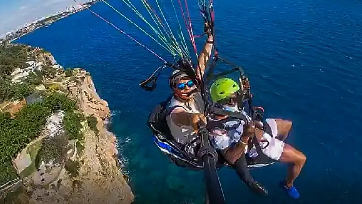 Antalya'da tatilini geçiren ABD'li turist, Konyaaltı sahili üzerinde yamaç paraşütüyle çiftli atlayış sırasında heyecandan bayıldı. Pilot Metehan Göller, kısa süreliğine bilincini yitiren turisti kendisine getirip uçuşu tamamladı.