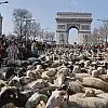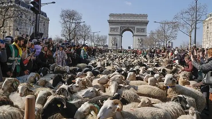 Fransa'nın başkenti Paris'in ünlü Champs-Elysees Caddesi koyun ve kuzulardan oluşan korteje ev sahipliği yaptı