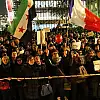 Esed rejimi ve onu destekleyen ülkeler aleyhine slogan atan gruptakilerin bir bölümü, Suriye bayrakları ile "Halep'i kurtaralım", "Halep'te ateşkesi sağlayalım" yazılı pankartlar taşıdı.
