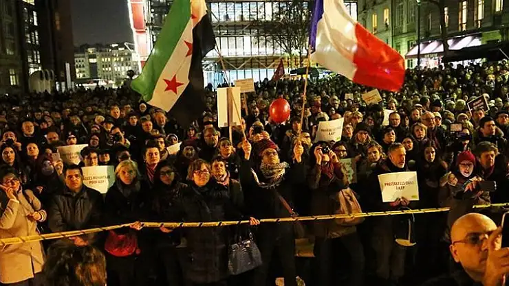 Suriye'nin Halep kentinin doğusunda kuşatma altındaki sivil halka yönelik saldırılar, Fransa'nın başkenti Paris'te protesto edildi.