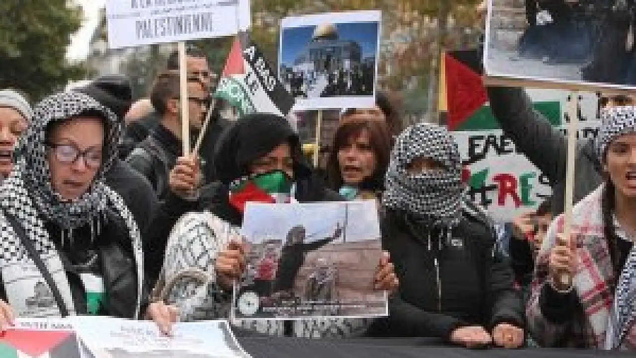 İsrail'in Mescid-i Aksa'ya yönelik ihlalleri ve Batı Şeria, Kudüs ve Gazze'de uyguladığı şiddet eylemleri Paris'te protesto edildi.