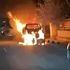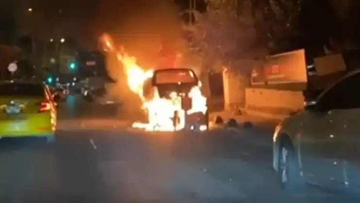 Park halindeki araç alev alev yandı