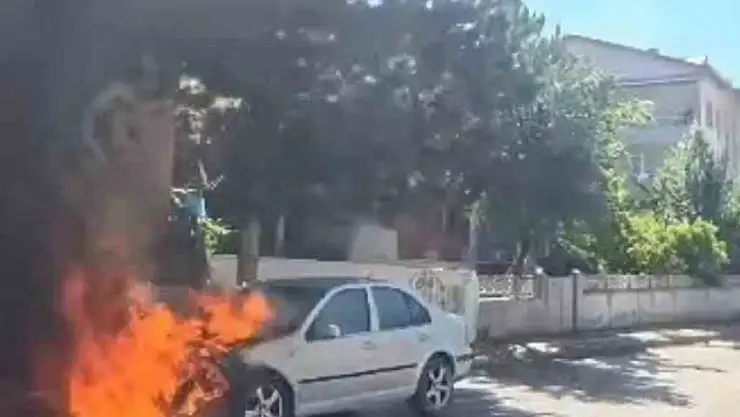 Park halindeki araç alev alev yandı