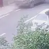 Hatay'da bir otomobil, park halindeki araca çarparak ters döndü, kaza anıysa güvenlik kamerasına yansıdı.