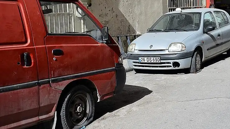 Eskişehir'de park halindeki 30'dan fazla aracın lastikleri kimliği belirsiz kişiler tarafından kesildi.