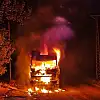 Adıyaman'ın Gölbaşı ilçesinde park halindeki kamyon alev alarak yandı.