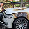 Antalya'da park halindeki yabancı plakalı BMW marka lüks otomobil yanarak kullanılamaz hale geldi.