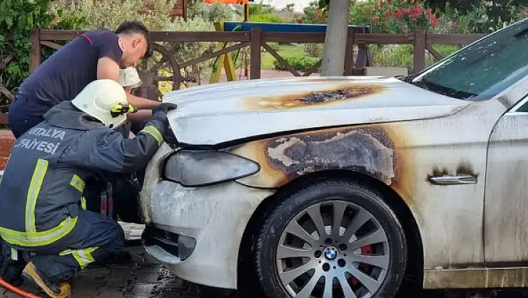 Olay, Alanya ilçesi Dinek Mahallesi'nde meydana geldi. Edinilen bilgilere göre, İsveç plakalı park halindeki BMW marka lüks otomobilin motor kısmında yangın çıktı. İlk müdahalede bulunan çevredeki vatandaşların ihbarı üzerine bölgeye itfaiye ve polis ekipleri sevk edildi. İtfaiye ekiplerinin kısa sürede müdahalesiyle alevler aracın tamamını sarmadan kontrol altına alındı. Lüks otomobilin motor kısmında çıkan yangının sebebi, itfaiye ekipleri tarafından yapılan incelemenin sonunda kesinlik kazanacak.