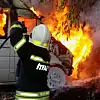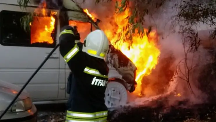 Muğla'nın Milas ilçesinde park halindeki minibüste çıkan yangın itfaiye ekipleri tarafından söndürülürken araç küle döndü.