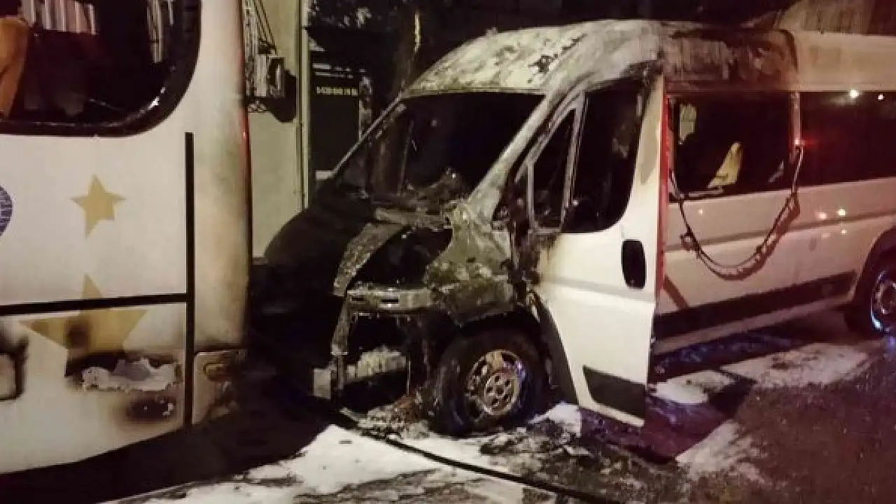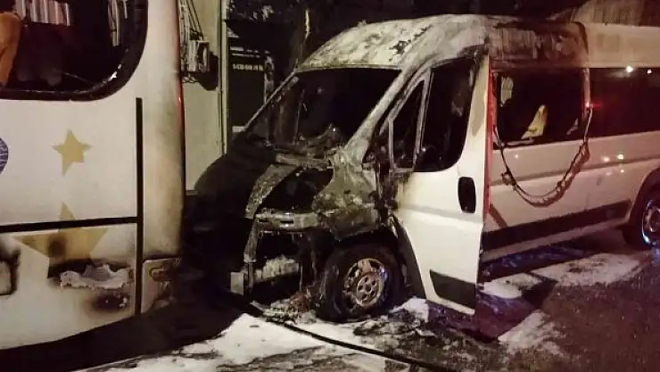 Aydın'ın Nazilli ilçesindeki yangında park halindeki iki minibüsten biri tamamen diğeri ise kısmen yandı.