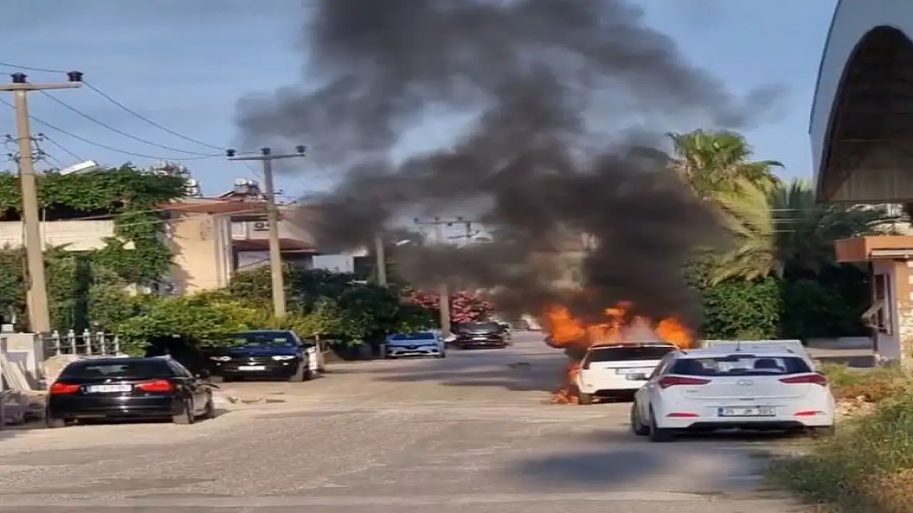 Antalya'nın Manavgat ilçesinde park halindeki otomobil alev alev yandı. Kullanılamaz hale gelen araçtaki yangın kameralara saniye saniye yansıdı.