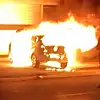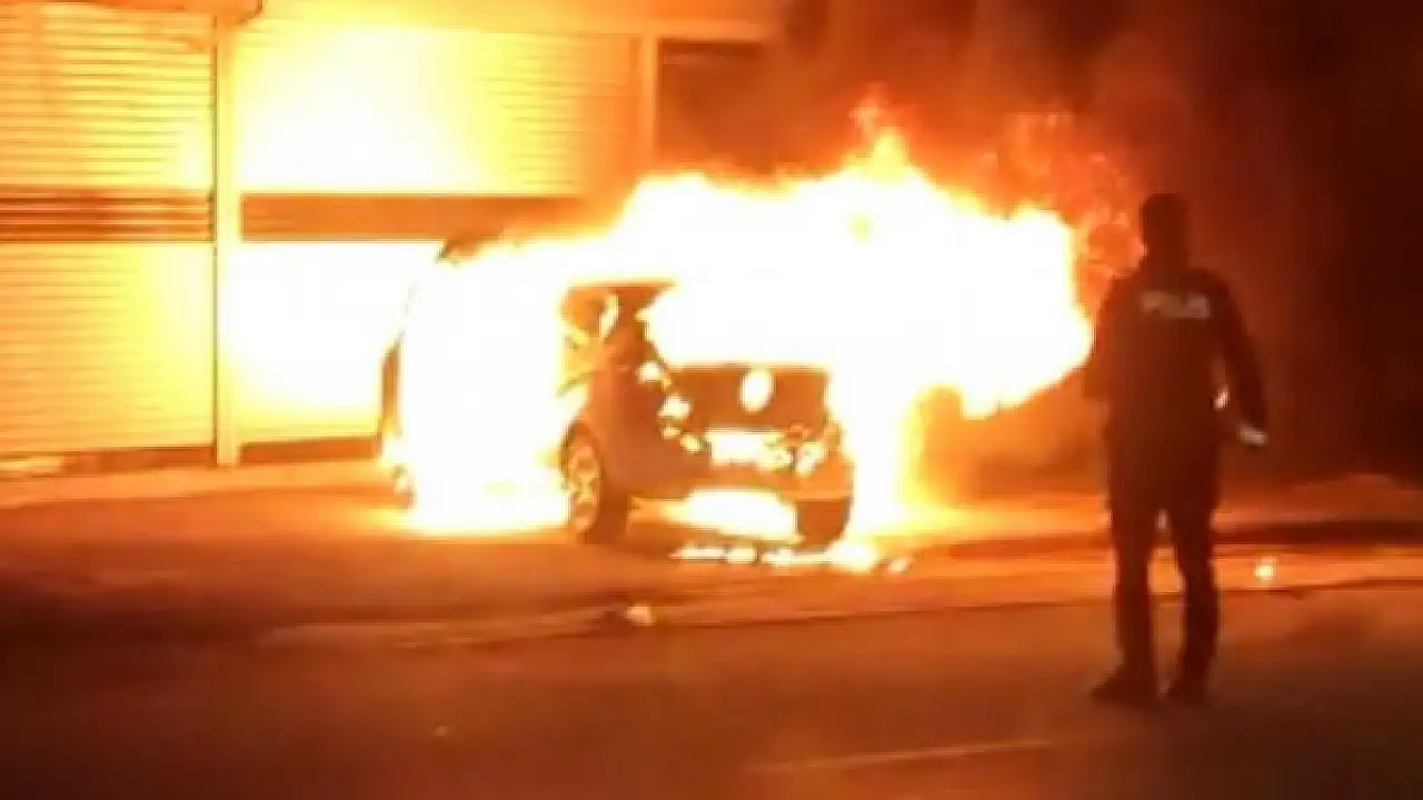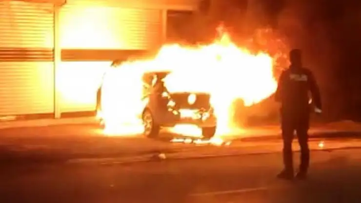 Şanlıurfa'nın Siverek ilçesinde park halindeki otomobil belirlenmeyen bir nedenle alev topuna döndü.