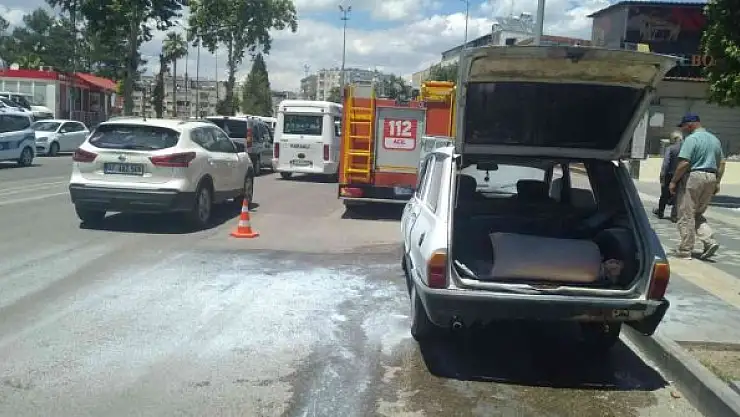 Adıyaman'da, park halindeyken alev alan otomobil itfaiye ekiplerince söndürüldü.