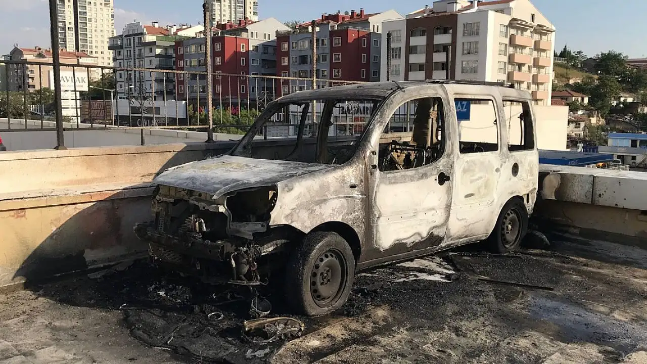 Öte yandan aracın yandığı anlar vatandaşların cep telefonu kamerasına yansıdı.