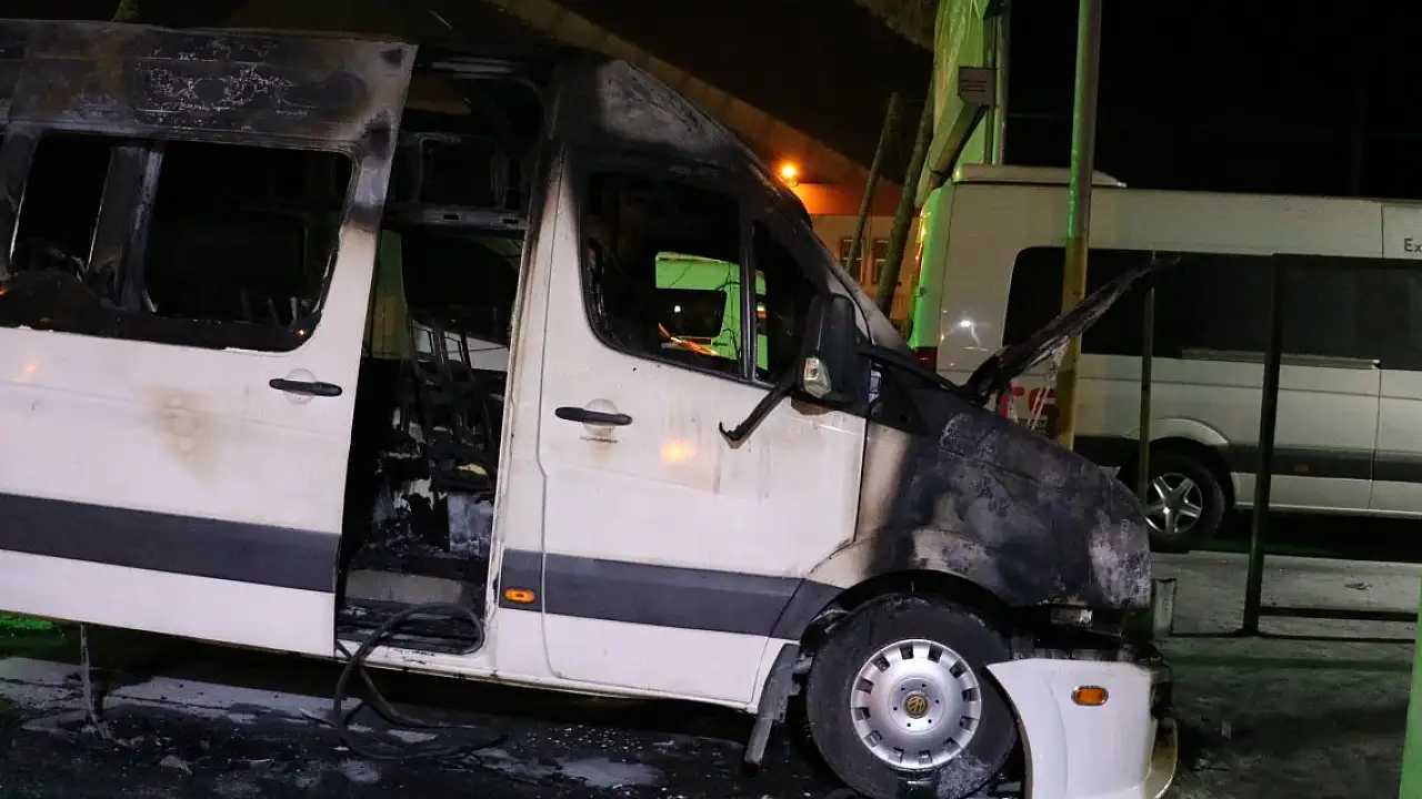 Park halindeki servis minibüsü alev alev yandı