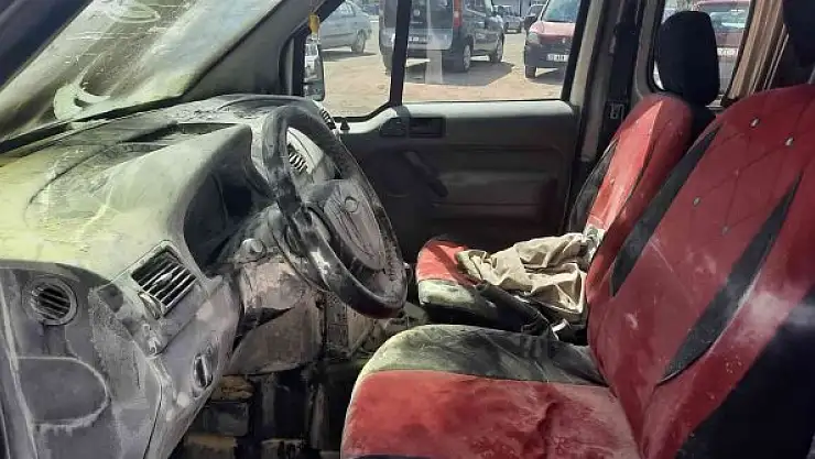 Çorum'un Osmancık ilçesinde, park halindeyken alev alan hafif ticari araçta maddi hasar oluştu.