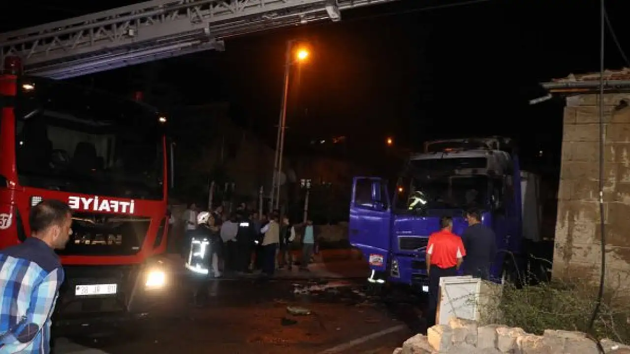 KAYSERİ'de, park halindeki TIR'da çıkan yangında alevler yakında bulunan tek katlı evin çatısına sıçradı. İtfaiye ekiplerinin müdahalesiyle iki yangın söndürülürken, TIR kullanılamaz hale geldi.