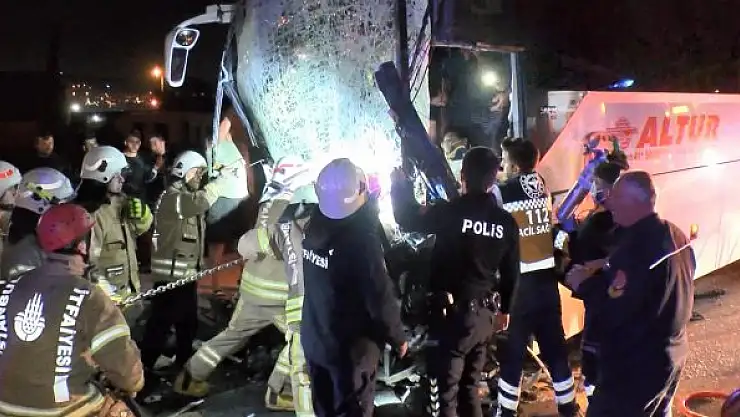 ÇATALCA'DA, sürücüsünün direksiyon hakimiyetini kaybettiği otobüs, park halindeki TIR'a arkadan çarptı.