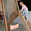 Parka götüremediği torunu için ahşaptan salıncak ve kaydırak yaptı