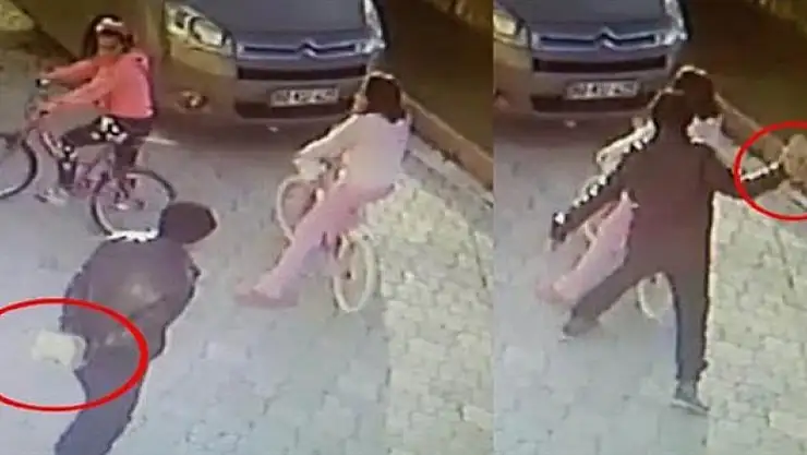 Öte yandan, şüphelinin küçük kızın başına parke taşıyla vurma anı, güvenlik kamerasına yansıdı.