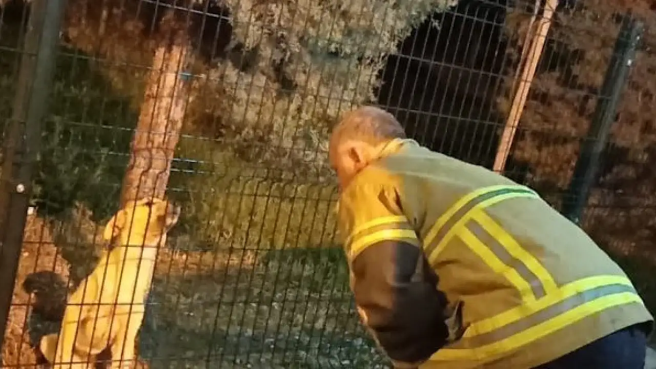Parkın koruma tellerine sıkışan köpek, itfaiye ekiplerince kurtarıldı