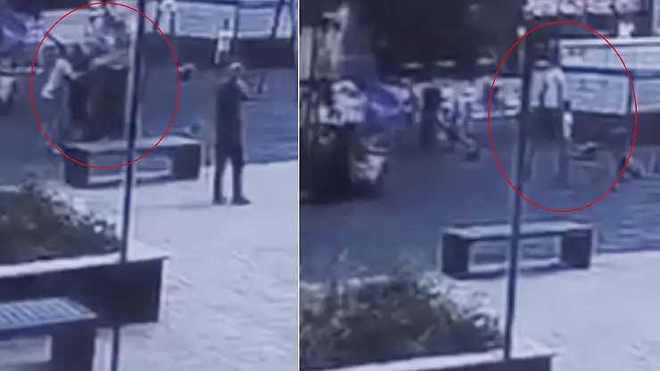 Parkta oynayan 2 çocuğu darbetti olay anı kamerada
