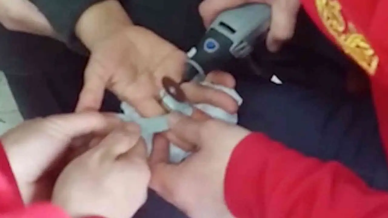 Kırıkkale'de bir kadının parmağına sıkışan yüzük, itfaiye ekiplerince spiral ile kesilerek çıkartıldı.