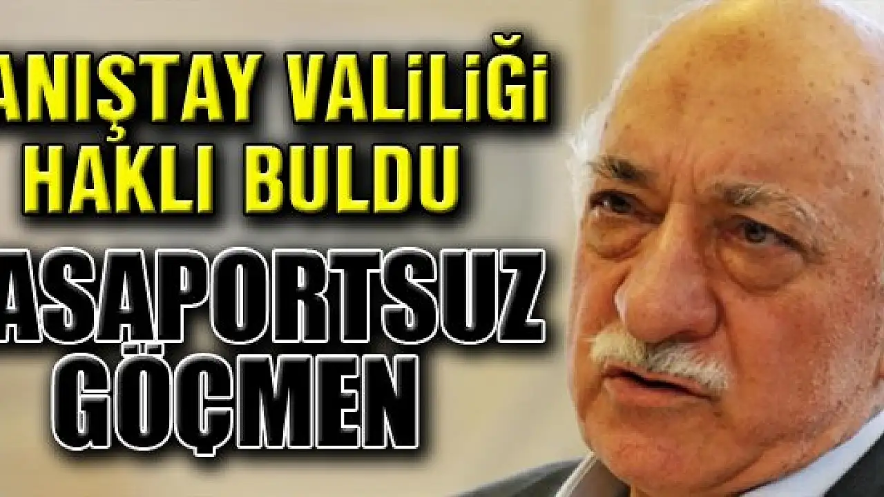 Danıştay, Fethullah Gülen'in pasaportunu iptal eden Erzurum Valiliği'ni haklı buldu. Danıştay, 'Yeşil pasaport için doğru olmayan bilgiler verdi ve idareyi yanılttı' dedi. Gülen ABD'de 'pasaportsuz' göçmen konumuna düştü.