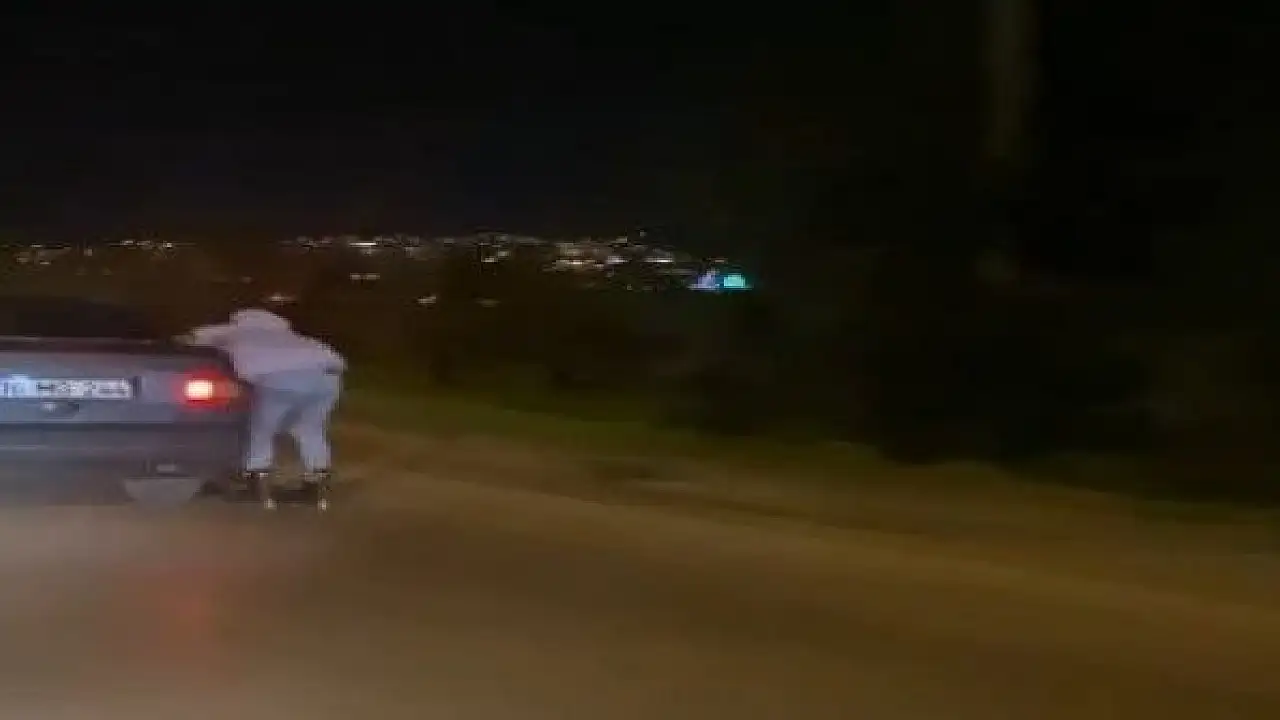 Edinilen bilgiye göre, patenli bir genç, otomobile tutunarak seyahat etti. Bu tehlikeli yolculuğu görenlerin yüreği ağzına geldi. Bir süre canını hiçe sayarak seyahat eden genç, arabayı bıraktıktan sonra hızlıca gözden kayboldu. Bu tehlikeli anlar cep telefon kamerasına yansıdı.
