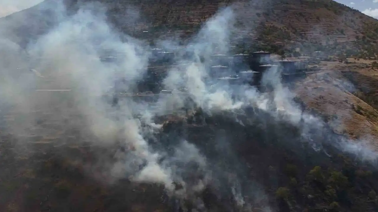 Kayseri'nin Talas ilçesindeki ormanlık alanda çıkan yangına ekiplerin müdahalesi sürüyor. Patlıcan közlenirken dağılan alevler nedeniyle çıktığı belirlenen yangının villalara ulaşmaması için ekipler yoğun çaba sarf ediyor.