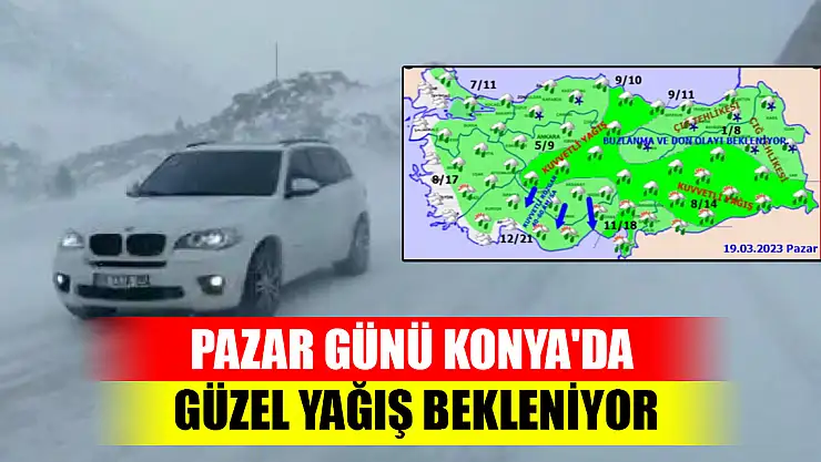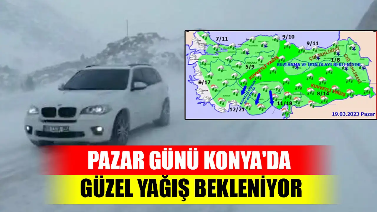 19 Mart Pazar günü ise Konya'nın birçok ilçesinde kar yağışı bekleniyor.