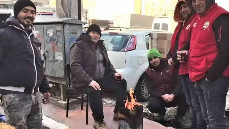 Pazarcılar, yaktıkları ateşle ısınmaya çalıştı