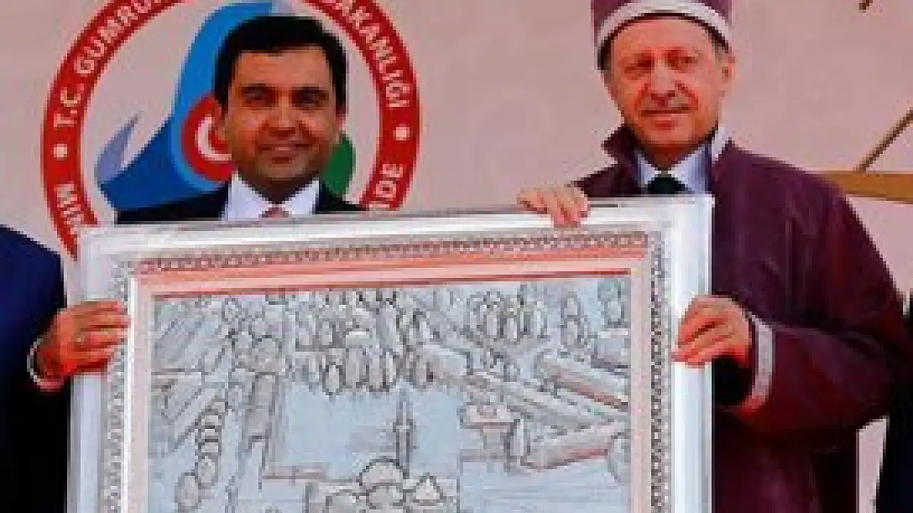 Kırşehir Belediye Başkanı Yaşar Bahçeci, Erdoğan'a Kırşehir'in anahtarı ve Ahilik Külliyesi'nin maketini hediye etti. AA