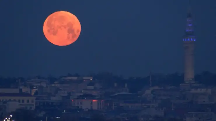 İstanbul'da baharın habercisi olarak bilinen ve 'Pembe Ay' adıyla anılan Dolunay, gökyüzünde görsel şölen oluşturdu.